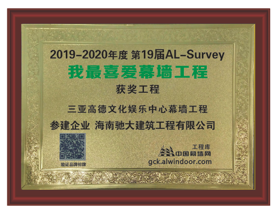 2019-2020年三亞高德文化娛樂中心頒發(fā)我最愛幕墻工程